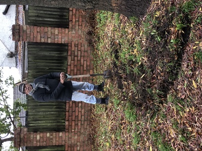 Fielding, Parks Co-ordinator helped to mulch the hedge