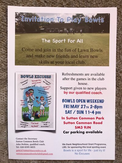 outdoor sports. But, at Sutton Common Bowls Club we are